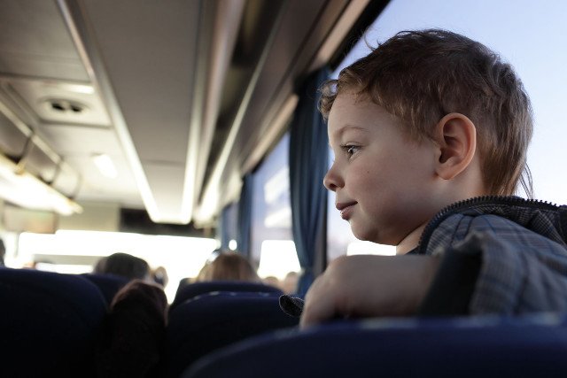 Autobus. Naprzeciwko siebie siedzi mama z synkiem i Pan w garniturze. Chłopiec jest niespokojny. Jedzie już dość długo, nie może się pobawić, pobiegać, ma 5 lat i ciężko mu usiedzieć dłużej niż 5 minut. W autobusie tłok. Chłopiec z nudów zaczyna kopać siedzenie naprzeciwko. Mama zwraca mu uwagę, jednak wie, że tak jak za każdym razem chłopiec nie przestanie, dopóki nie wysiądzie. Szybko odpuszcza więc tłumaczenie, że zniszczy fotel. Jest zmęczona.