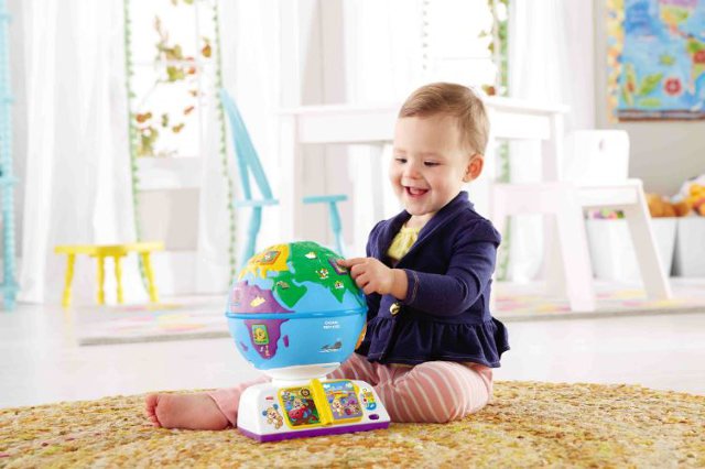 Cały świat będzie w zasięgu małych rączek! Ta zabawka rozbudzi w maluchu pasję do odkrywania nieznanych dotąd miejsc. Siedem przycisków umieszczonych na powierzchni globusa zapoznaje małego podróżnika z kontynentami, zamieszkującymi je zwierzętami oraz różnojęzycznymi powitaniami. Poprzez obracanie globusa dziecko uruchomi piosenki i wypowiadane zdania o nowo odkrytych miejscach. Dzięki przewracaniu strony Książki Podróżnika, umieszczonej na podstawce, maluch pozna różne środki transportu, a zabawie towarzyszyć będą wesołe dźwięki. Globus wyposażony został w technologię „Poziomy nauki”, która umożliwia dostosowanie treści do wieku i etapu rozwoju dziecka.