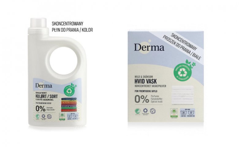 Od czerwca 2018 roku na polskim rynku można znaleźć w pełni bezpieczne, idealne dla osób dbających o zdrowie i o środowisko, polecane dla niemowląt i alergików – skoncentrowane proszki i płyny do prania duńskiej marki Derma. Nowe środki do prania nie zawierają składników zapachowych i innych alergenów oraz substancji podrażniających, ich bezpieczeństwo dla zdrowia i środowiska zostało potwierdzone przez międzynarodowe certyfikaty.
