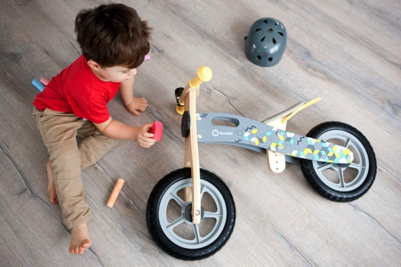 Casper został wyposażony w specjalne nakładki na rączki, co pomaga maluszkowi utrzymywać pewny chwyt na kierownicy. Rowerek w trosce o bezpieczeństwo nie ma ostrych krawędzi, a w samej kierownicy znajduje się blokada skrętu, by ograniczyć upadki. Drewniana konstrukcja zapewnia niską wagę i dużą trwałość ramy.