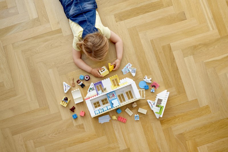 To jedna z najważniejszych zabawek w dziecięcym pokoju — każdym, niezależnie od szerokości geograficznej. Dzieci na całym świecie uwielbiają zabawę w dom: uczą się gotować, sprzątać, urządzać przeprowadzki, organizować rodzinne imprezy.Wielofunkcyjny domek od LEGO DUPLO daje im w tej kwestii nieograniczone możliwości. Jest kilkupoziomowy, więc znajdzie się w nim dużo miejsca dla wszystkich potencjalnych lokatorów: mamy, taty, dziecka i pieska, których figurki znajdziemy w zestawie.