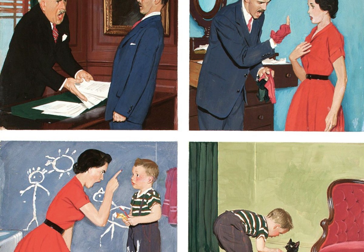 Przemoc nie powstaje z pustki. Wszystko, czego doświadczamy, i co manifestujemy w życiu, ma jakieś źródło. Agresja i przemoc są częścią naszego świata wewnętrznego i zewnętrznego, czy tego chcemy, czy nie. Rysunek ilustratora i malarza Richard’a Sargent’a, który co jakiś czas publikowany jest w sieci, jest dość uniwersalnym obrazem schematu przenoszenia agresji.