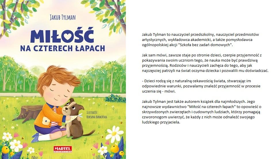 "Miłość na czterech łapach" to pozycja absolutnie wyjątkowa. To książka bardzo mocno mówiąca o tym, jak okrutni potrafią być ludzie, ile krzywdy zwierzętom zrobić. To bardzo ważna lektura, szczególnie w tym przedświątecznym okresie. Bo dorośli często chcąc zrobić dziecku przyjemność, kupują pod choinkę zwierzę. Często są to nieprzemyślane prezenty. Musimy zdawać sobie sprawę z tego, jak duża odpowiedzialność za tym idzie.