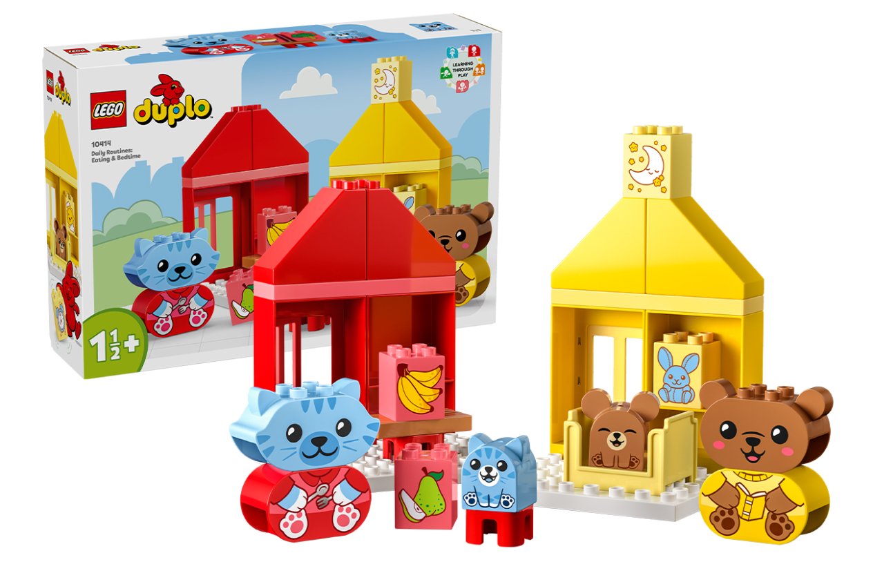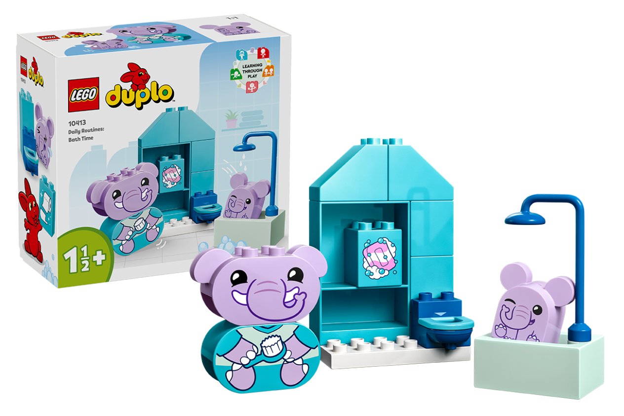 Zestawy takie jak LEGO DUPLO "Codzienne Rutyny: Jedzenie i Czas Spania" (10414) oraz LEGO DUPLO "Codzienne Rutyny: Czas Kąpieli" (10413) są zaprojektowane z myślą o edukacyjnej zabawie, która odzwierciedla codzienne czynności.