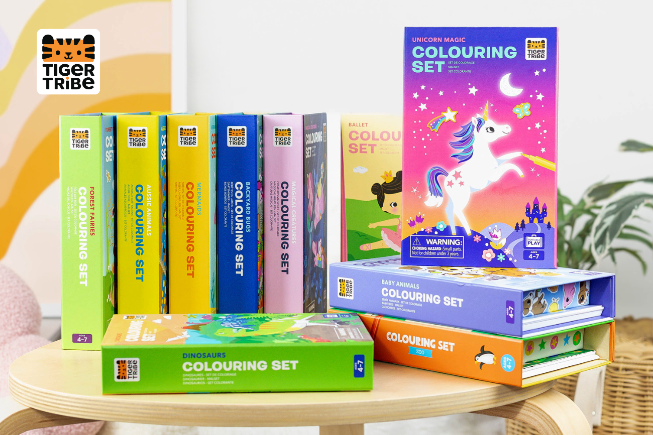 Te przenośne zestawy to chluba marki Tiger Tribe. W kompaktowych, zamykanych pudełkach dzieci znajdą kolorowanki i wszelkie przybory niezbędne do tworzenia, często w pakiecie z takimi dodatkami jak naklejki. Zestawy, w których można spotkać dinozaury, potworki, zwierzątka, wróżki i inne baśniowe stworzenia, nadają się do zabawy zarówno w domu, jak i w podróży.