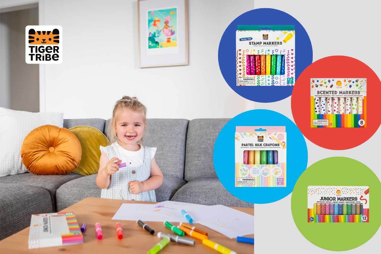 W świecie Tiger Tribe flamastry i kredki nie są zwykłymi przyborami. Jak głosi credo marki, maluchy muszą mieć "odpowiednie narzędzia", by zrobić użytek ze swojej bogatej wyobraźni i oddać się w pełni twórczej zabawie. Asortyment małego artysty można skompletować z m.in. zmywalnych lub pachnących markerów, miękkich kredek pastelowych oraz markerów z pieczątkami.