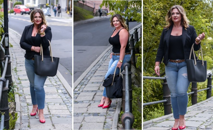 Jeansy z marynarką, to jeden z moich ulubionych zestawów do pracy. Lubię dodawać do stylizacji jakieś zdecydowane akcenty, bo według mnie to dodatki tworzą klimat. Lubię przełamywać klasykę, jakimiś odważnymi motywami, jak np. podarte jeansy, pasek w panterkę, czy czerwone szpilki.