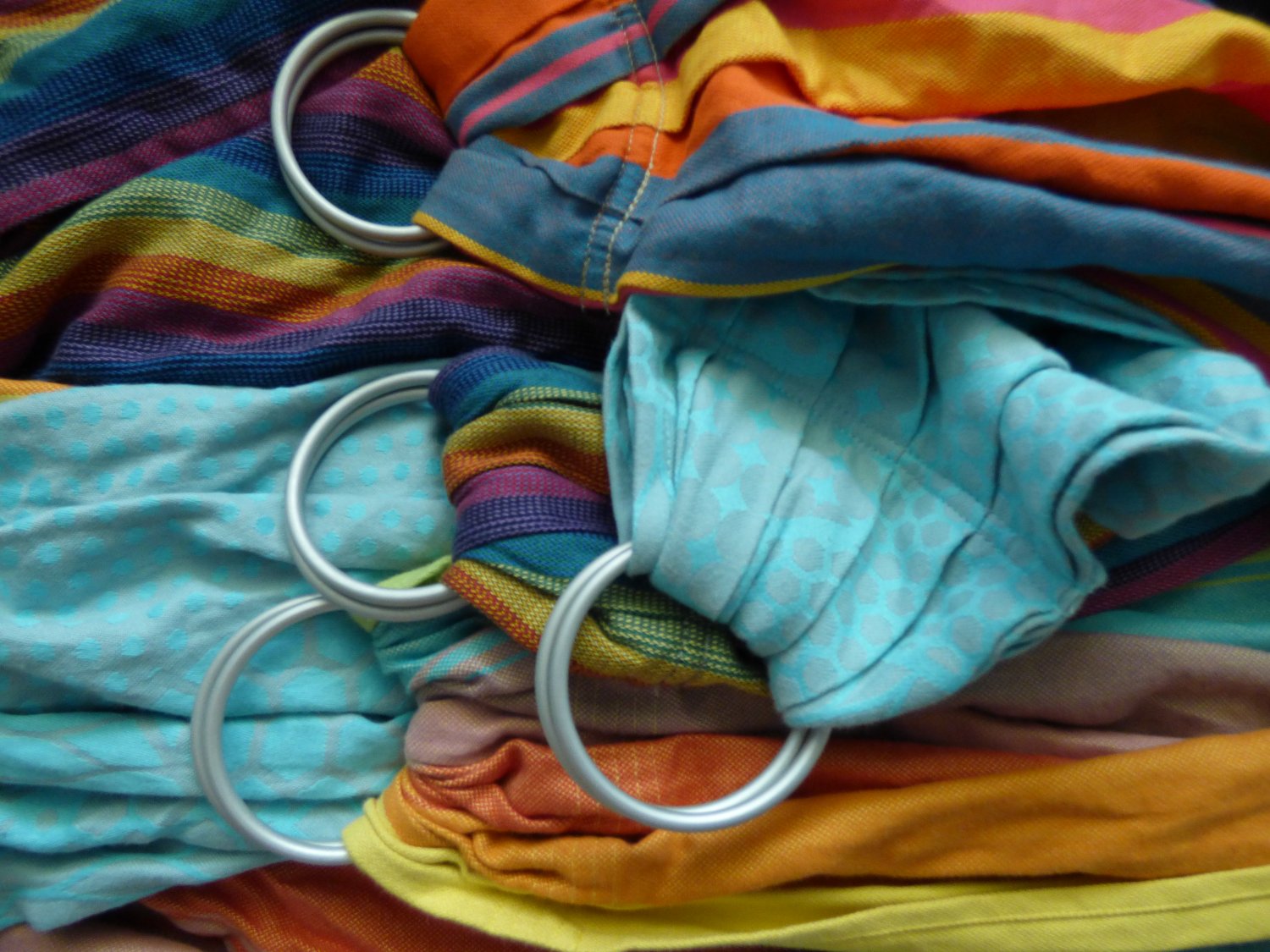 Kółka stosowane w chustach mogą być aluminiowe albo plastikowe, przy czym- bez dwóch zdań- polecam te pierwsze. Aluminiowe są i wytrzymalsze,