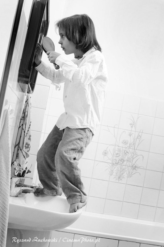 Nie mogę sobie znaleźć miejsca. Na szczęście żona wysyła mnie po kolejne zakupy. Gdy wracam, panie kończą świąteczne przygotowania. Nadchodzi decydujący moment wieczoru. Słyszę: "Kochanie czy mógłbyś pomóc Frankowi przebrać się i uczesać?". Zaczynam poszukiwania naszego syna. Nie mogę go znaleźć, jakaś dziwna cisza. Mam nadzieję, że nie wróży ona nic złego. Zaglądam do łazienki i widzę Franka w ekwilibrystycznej pozie na brzegu umywalki. Przebranego. Kończącego właśnie swoje przygotowania. Układa sobie włosy. Jeszcze kilka ruchów i już.