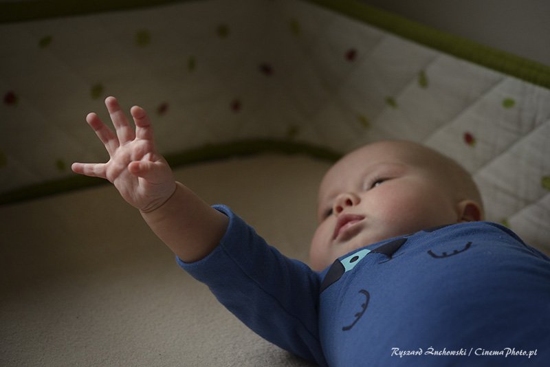 Nieustający rozwój dziecka. Z dnia na dzień, z godziny na godzinę. W jednej chwili stajemy się świadkami wielkich kroków, nie tyle dla ludzkości, co dla naszych ukochanych dzieci. Pierwszy krok Neila Armstronga był wielkim krokiem dla ludzkości. Gest rączką u niemowlaka jest kolejnym znakiem nieustających skoków rozwojowych, które możemy zaobserwować u naszych cudownych, małych istot. Moment, gdy niemowlę obserwuje swoją rączkę i jej ruchy, jest dla niego tak samo ważny, jak niegdyś pierwszy krok na księżycu. Powoli zaczyna rozumieć swój wpływ na własne ciało. Wspaniale móc to obserwować na co dzień.