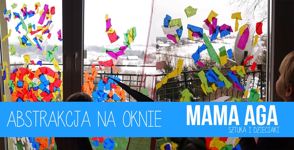 Odkryliśmy ostatnio fantastyczną zabawę plastyczną, która zaangażowała Olusia (i mnie również :-)) na dobre kilka godzin. Od dawna chciałam ją wypróbować, ale jakoś nie było okazji. W okresie bożonarodzeniowym nasze drzwi balkonowe były ozdobione obrazkami ze sztucznego śniegu, a po ich zmyciu zrobiło się jakoś pusto. I wreszcie przed walentynkami postanowiłam nadać oknu nowy „look” i przykleić na zmywalnym przezroczystym kleju serce z kolorowej prasowanej bibuły.Zaczęło się od serducha a skończyło na abstrakcyjnym mega kolorowym dziele, które w tamten ponury i pochmurny dzień, wprowadziło mnóstwo koloru do naszego domu.