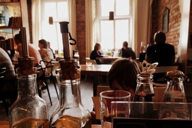 (A widok przez okno z trzeciego rzędu stolików na odległą kamienicę jaki jest frapujący ponad głowami obecnych, ech!)