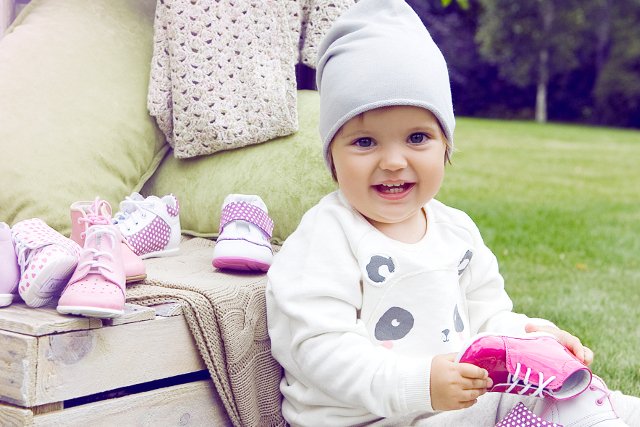 Równie istotna jest częsta kontrola aktualnie używanych przez dziecko bucików, ponieważ w wieku od 8. do 18. miesięcy małe stopy mogą bardzo szybko rosnąć, w ciągu roku nawet o 3 rozmiary!