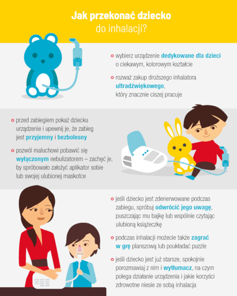 Pierwsze zabiegi, mimo że są całkowicie bezbolesne, mogą powodować w dziecku niechęć i strach. Przestraszony maluch może wzbraniać się przed inhalacją, bo jest to dla niego nowa sytuacja. Płacz może również obniżać efektywność terapeutyczną leczenia, ponieważ lekarstwo zamiast dostawać się do objętych infekcją dróg oddechowych ląduje wówczas na tylnej części gardła. Czy da się tego uniknąć?